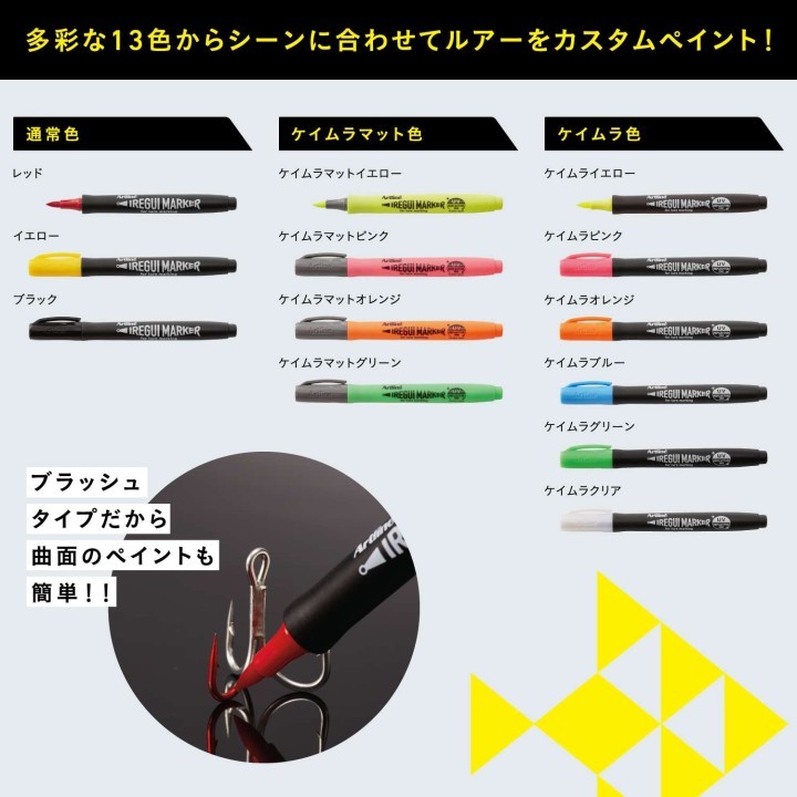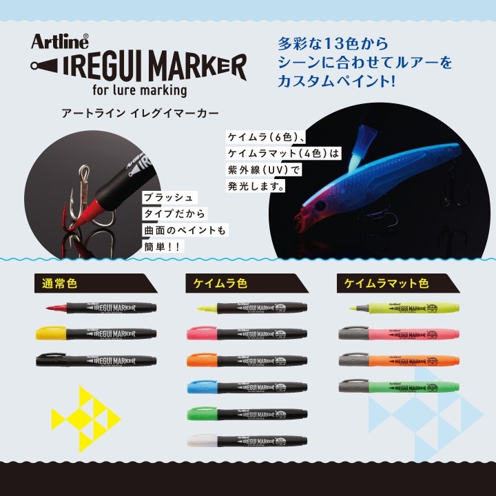 釣り場で簡単・スピーディーにルアーへの着色&ケイムラ加工ができるマーカーです。