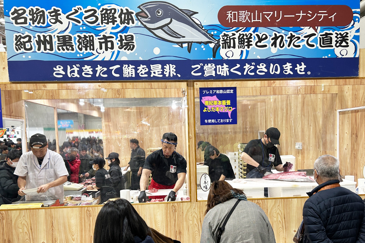 ■和歌山市「紀州 黒潮市場」で大好評!のマグロの解体実演を行ないます。(マグロは、プレミア和歌山認定・南紀串本畜養よしだ本マグロ)■マグロのサクや握り寿司の販売も行います。※解体ショーの時間は当日会場で発表!■参加費 無料