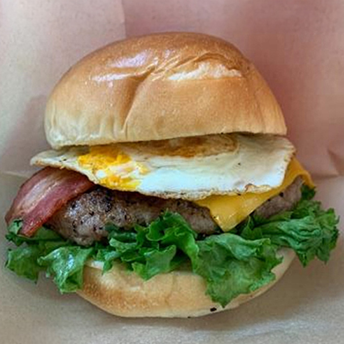 牛肉100%のジューシーパティにチーズとベーコン、たまごをふわふわバンズにサンド! 栄養もボリュームも満点です。