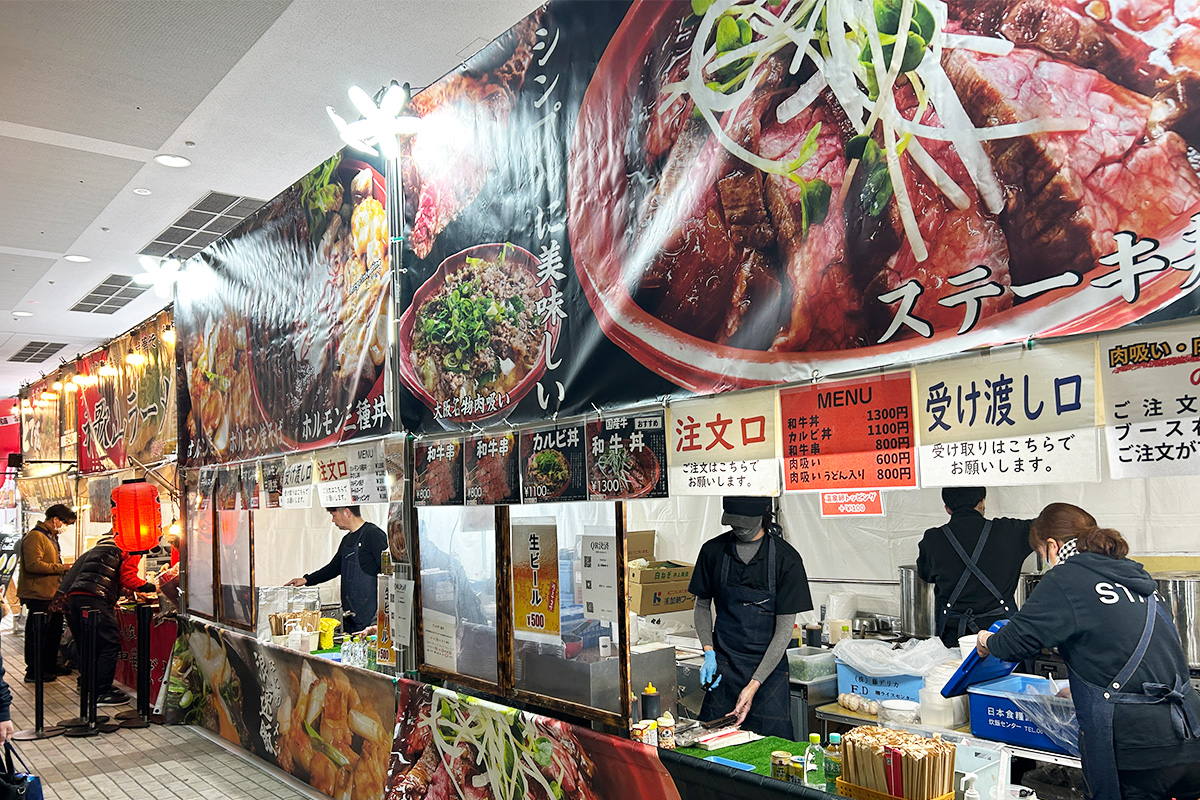 日本各地からおいしい料理やイベントならではのお店が登場。