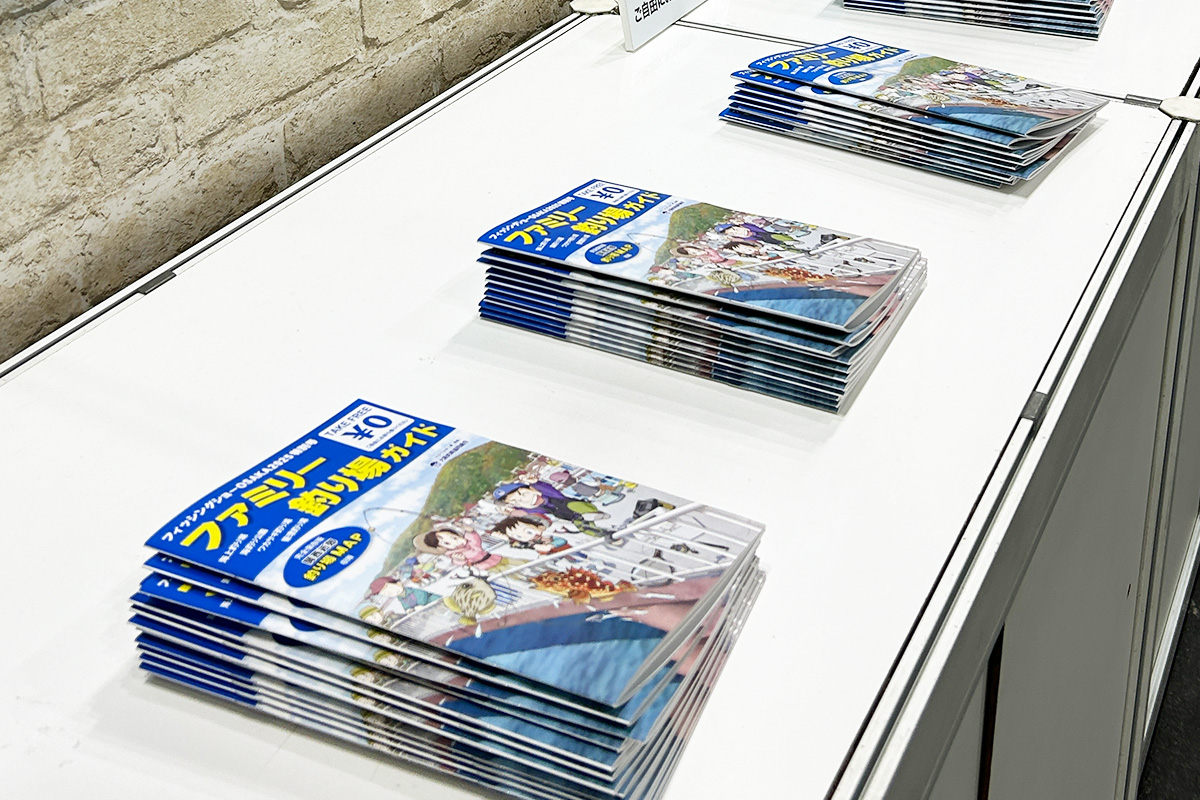 ■釣り場案内コーナーと、釣り方、釣り道具、釣りテクニックも書いてある小冊子もコーナーで無料配布。