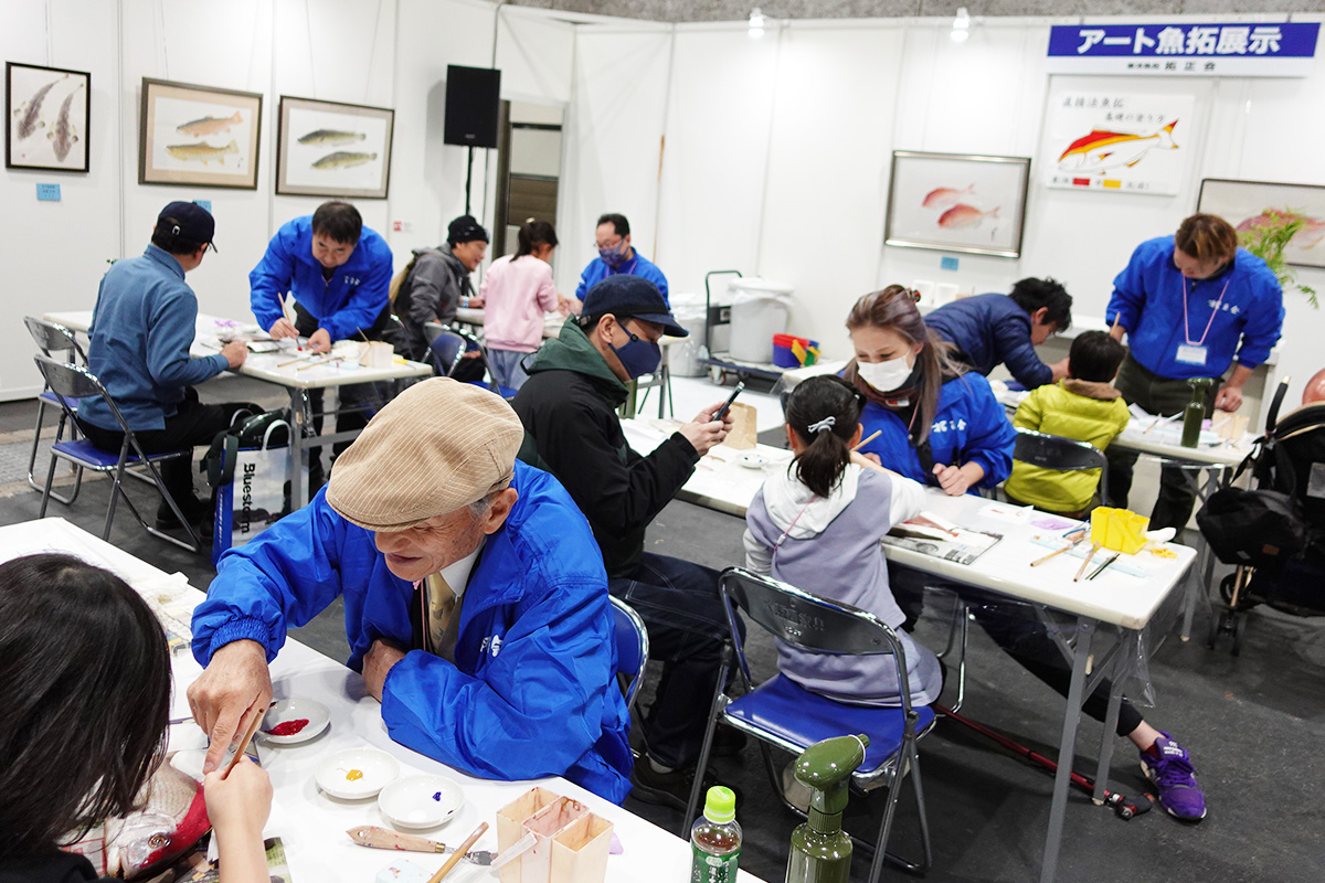東洋魚拓拓正会 会員による 「アート魚拓」 を実演します。