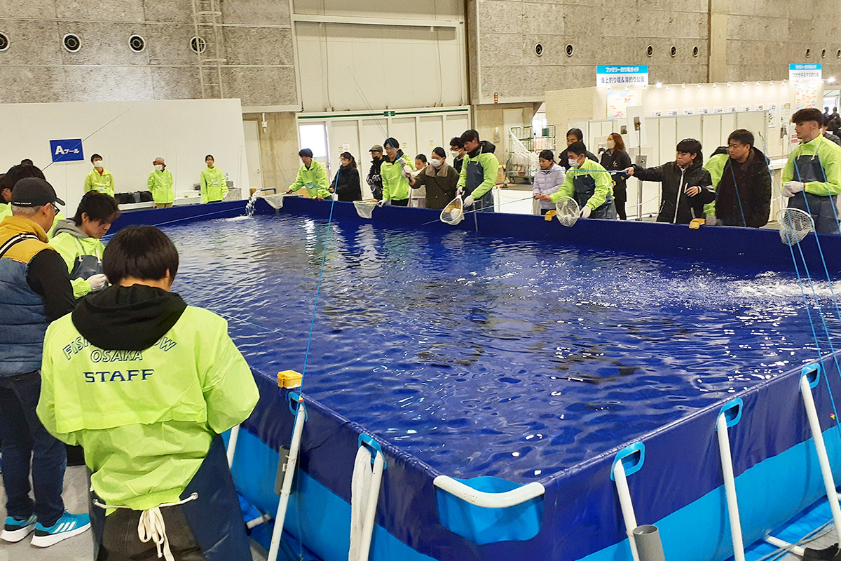特設プールで本物の魚の引きと釣りの楽しさを体感!