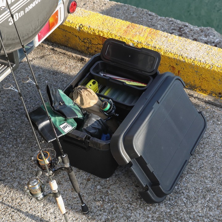 トランクカーゴはキャンプや釣りなどのアウトドアシーンはもちろん、自宅やガレージの収納ボックスとしても利用できる収納ボックスです。