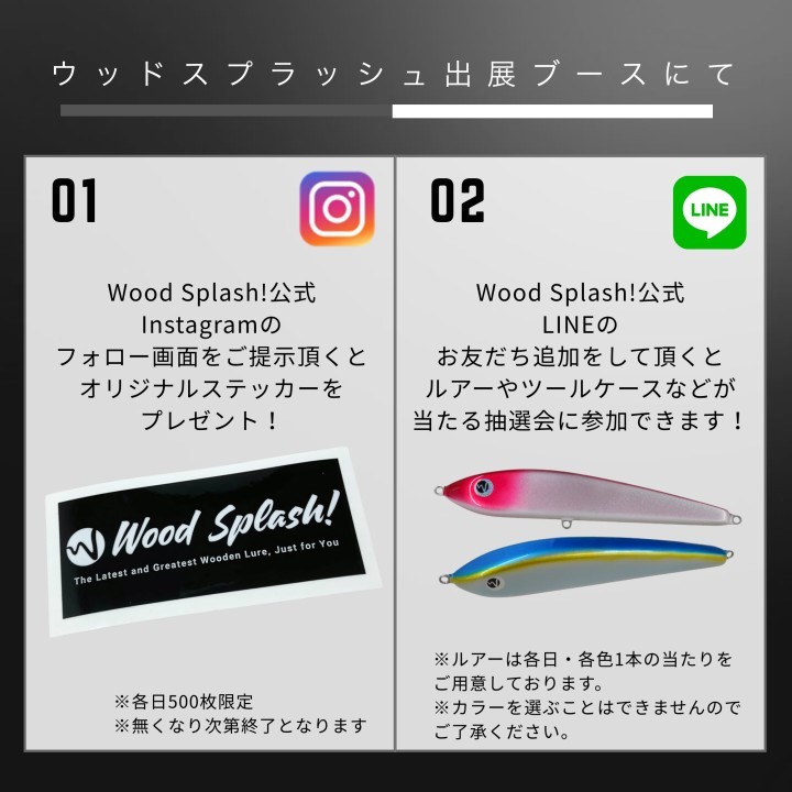 当日は、プレゼント企画もご用意しておりますので、みなさまのご参加をお待ちしております! 是非、Wood Splash!ブースにお立ち寄りください!